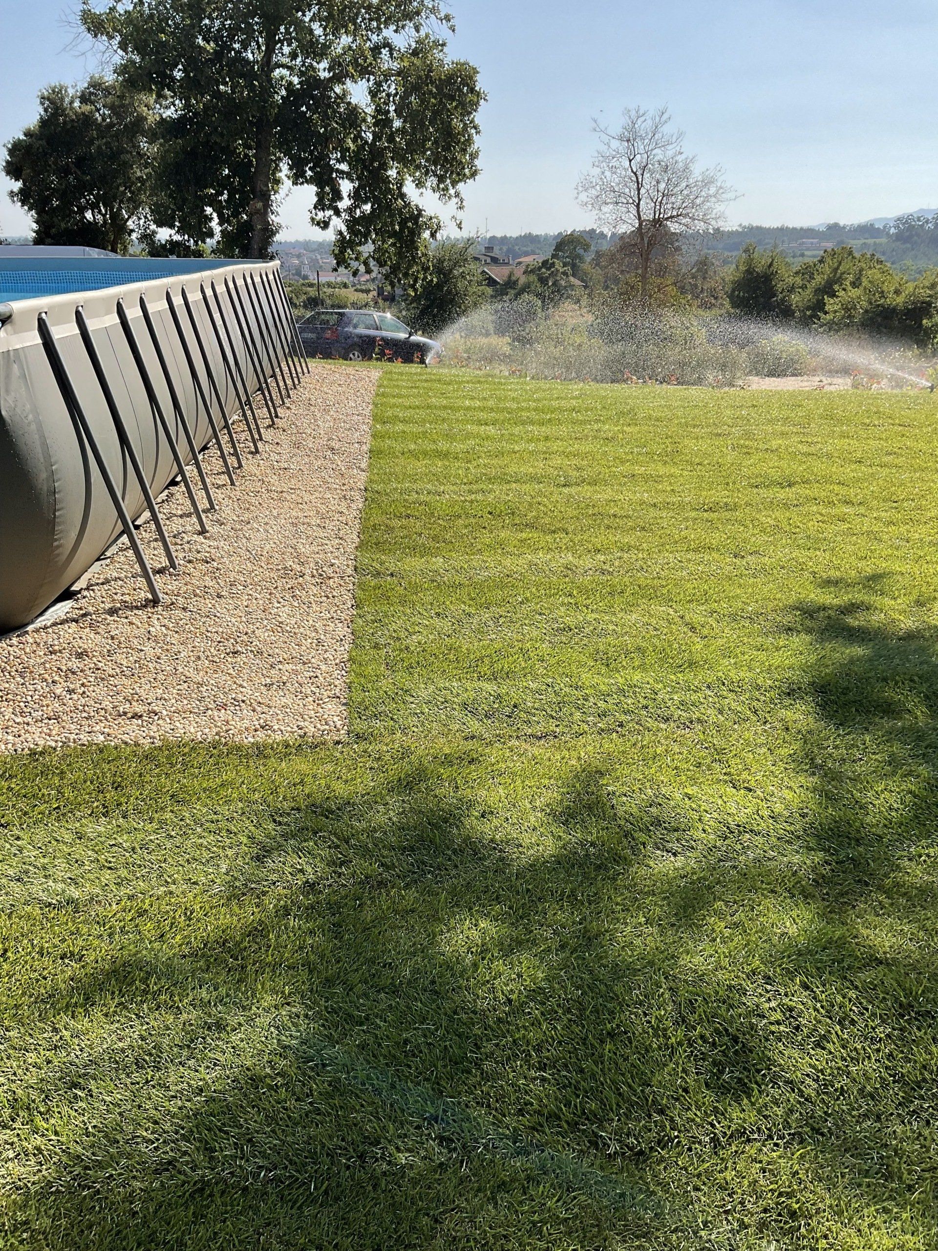 - jardins de baixa manutenção (malhas anti-erva, pedras, casca de pinho calibrada);